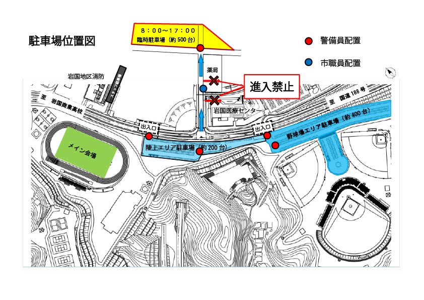 ・臨時駐車場(岩国医療センター北側):8:00〜17:00 開放